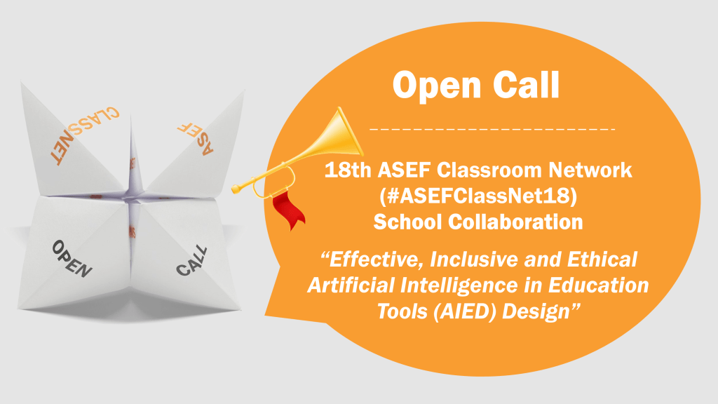 We are excited to share that we have launched the Open Call for the 18th edition of the ASEF Classroom Network (ASEFClassNet18) School Collaboration project on the topic, “Effective, Inclusive, and Ethical Artificial Intelligence in Education (AIED) Design” soon!