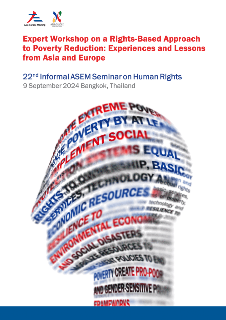 The report from the Expert Workshop on a Rights-Based Approach to Poverty Reduction: Experiences and Lessons from Asia and Europe held on 9 September 2024 in Bangkok, emphasises the importance of integrating human rights into poverty reduction strategies for both national and international contexts. It highlights that this approach promotes legal accountability, non-discrimination, and the empowerment of rightsholders, while acknowledging that such strategies require comprehensive data and insights from various fields beyond human rights law. The report discusses the challenges in measuring poverty and vulnerability and advocates for inclusive social protection programs and enhanced access to justice to combat the underlying causes of poverty. It calls for the expansion of anti-discrimination laws to encompass socio-economic status, thereby strengthening the synergy between anti-discrimination and redistributive policies. The Workshop’s recommendations focus on the necessity of evidence-based policies that prioritise the needs of the most vulnerable.