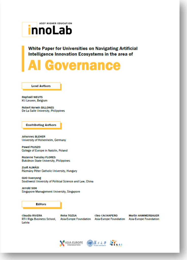 Since its establishment in 2021, the ASEF Higher Education Innovation Laboratory (ASEFInnoLab) has provided a platform for higher education stakeholders across Asia and Europe to connect, exchange knowledge, and collaboratively address global challenges. Its fifth edition, themed “Universities’ Role in AI Innovation Ecosystems,” explored the evolving role of universities in the AI era in three subthemes: AI Governance, AI in Education, and AI for Sustainable Development.